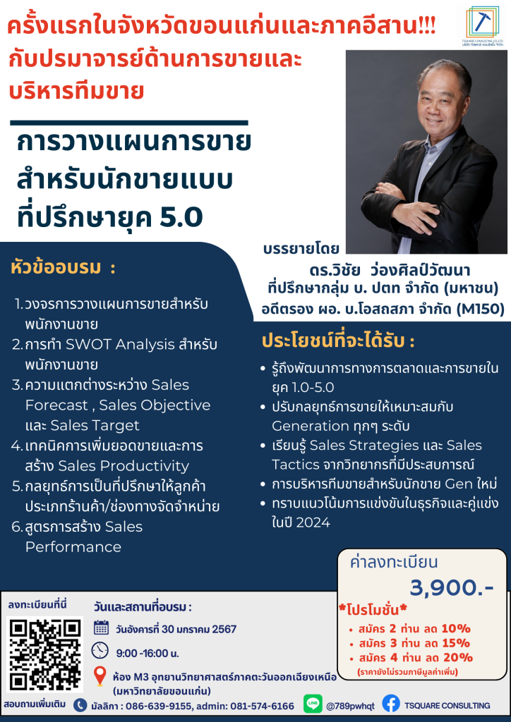 T Square Consulting เป็นผู้ให้บริการพัฒนาองค์กรที่มีความเชี่ยวชาญในการพัฒนาองค์กรด้วยองค์ความรู้สากล โดยที่ปรึกษาที่มีประสบการณ์ในอุตสาหกรรมมากกว่า 20 ปีในการช่วยกลุ่มผู้ประกอบการทั่วประเทศให้เติบโตและปรับตัวให้ก้าวหน้าอย่างยั่งยืน